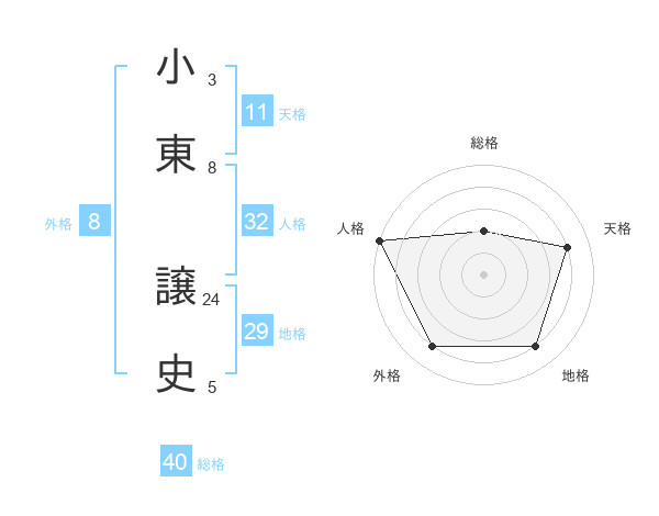 小東 譲史さんの総格は40画の2点!