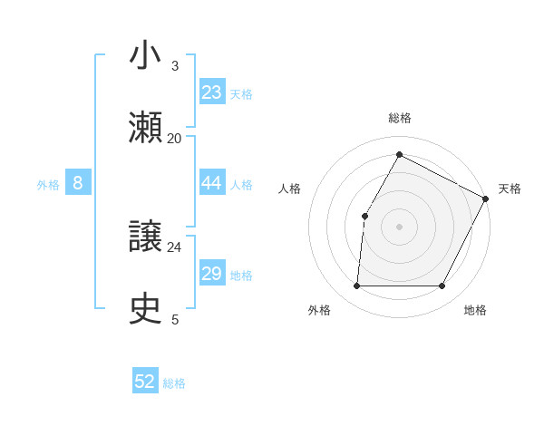 小瀬 譲史さんの天格は23画の5点!