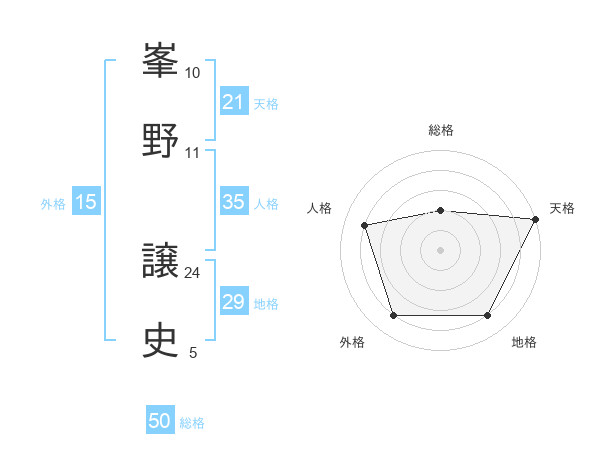 峯野 譲史さんを姓名の画数から五運を鑑定