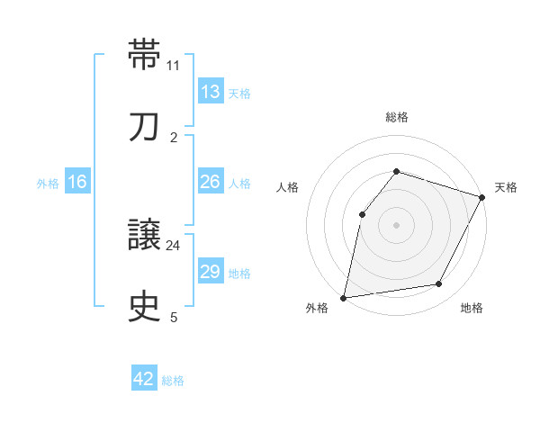 帯刀 譲史さんの総格は42画の3点!