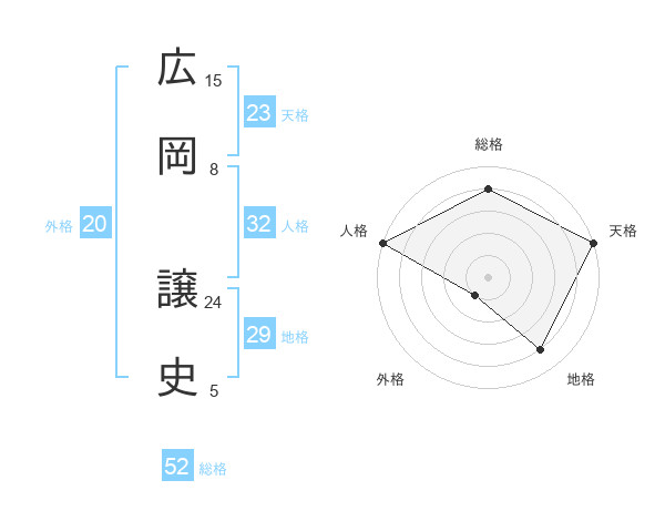 広岡 譲史さんの総格は52画の4点!