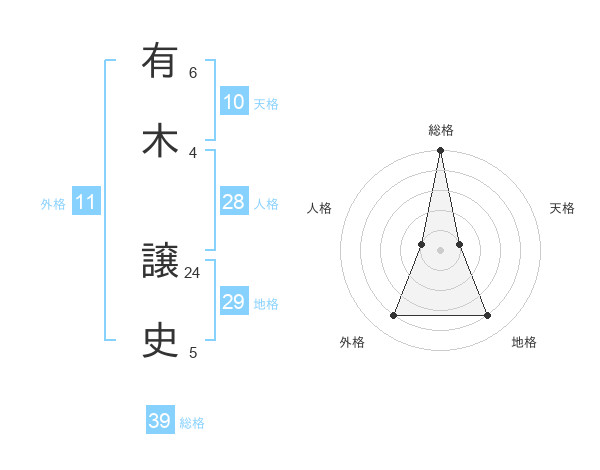 有木 譲史さんの総格は39画の5点!