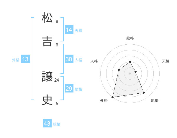 松吉 譲史さんを姓名の画数から五運を鑑定