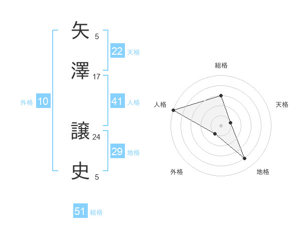 矢澤 譲史さんを姓名の画数から五運を鑑定