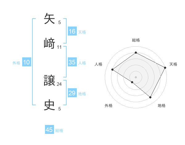 矢﨑 譲史さんの総格は45画の4点!