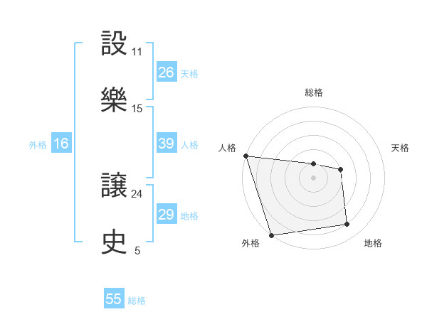 設樂 譲史さんの総格は55画の1点!