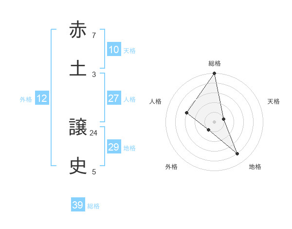 赤土 譲史さんの総格は39画の5点!