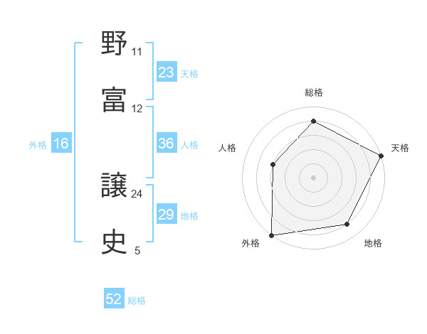 野富 譲史さんの総格は52画の4点!