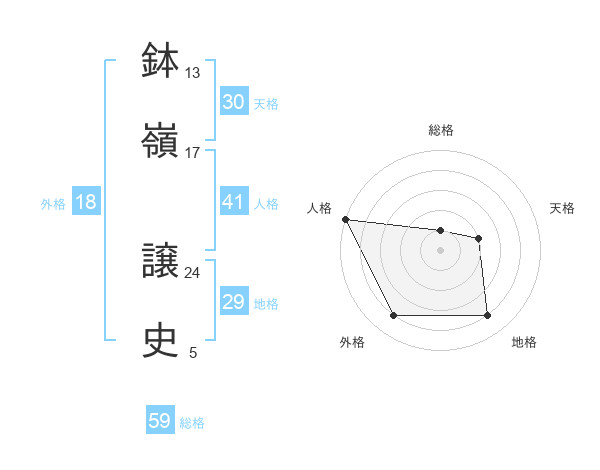 鉢嶺 譲史さんの総格は59画の1点!