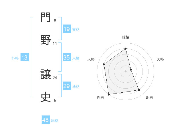 門野 譲史さんの総格は48画の4点!