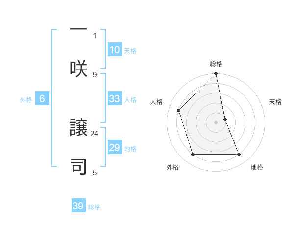 一咲 譲司さんの総格は39画の5点!