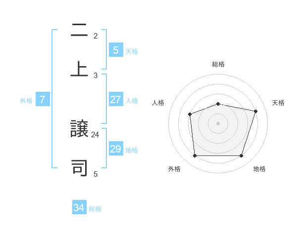 二上 譲司さんの地格は29画の4点!