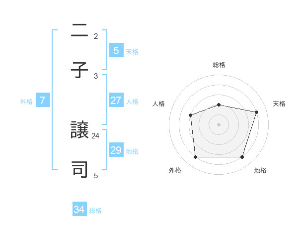 二子 譲司さんの天格は5画の4点!