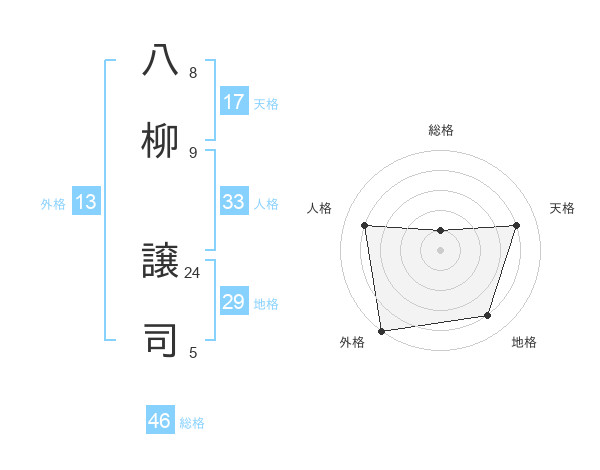 八柳 譲司さんの総格は46画の1点!