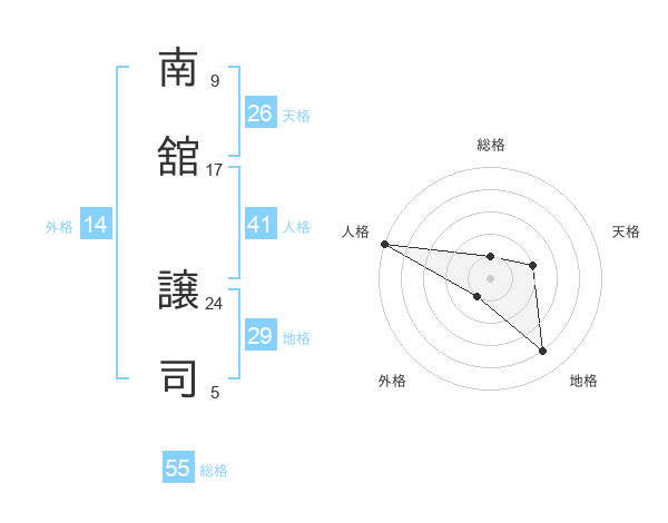 南舘 譲司さんを姓名の画数から五運を鑑定