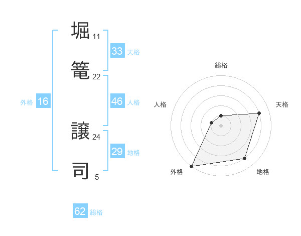堀篭 譲司さんを姓名の画数から五運を鑑定