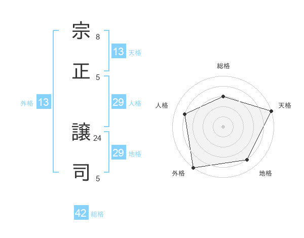 宗正 譲司さんの外格は13画の5点!