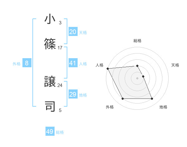 小篠 譲司さんの天格は20画の1点!