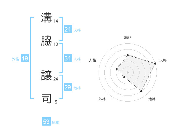 溝脇 譲司さんの総格は53画の3点!