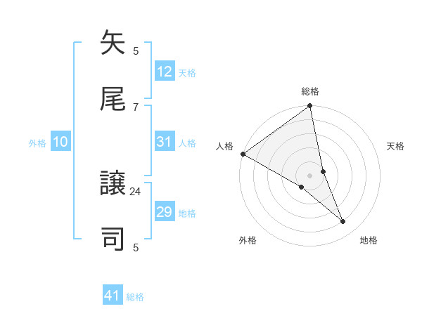 矢尾 譲司さんの総格は41画の5点!