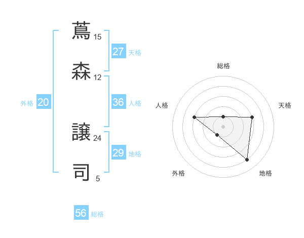 蔦森 譲司さんを姓名の画数から五運を鑑定