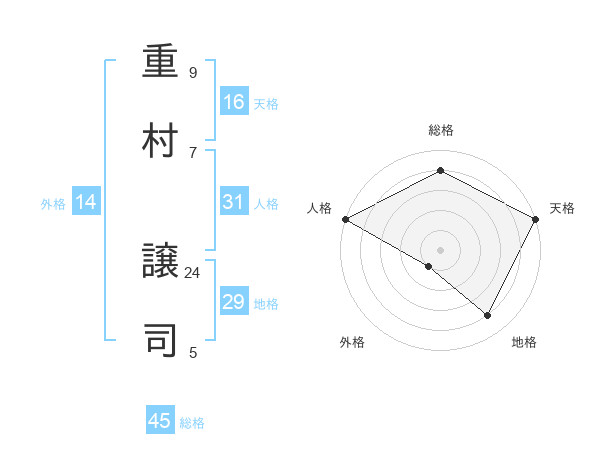 重村 譲司さんの総格は45画の4点!