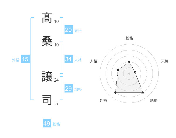 髙桑 譲司さんを姓名の画数から五運を鑑定