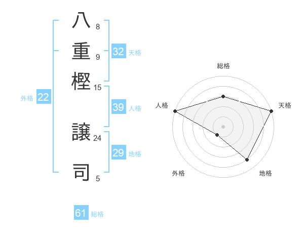 八重樫 譲司さんの天格は32画の5点!