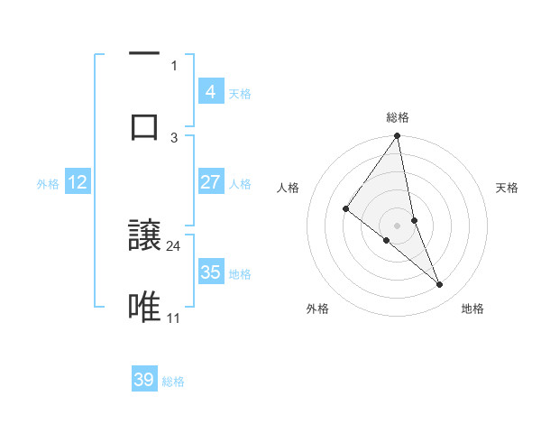 一口 譲唯さんの総格は39画の5点