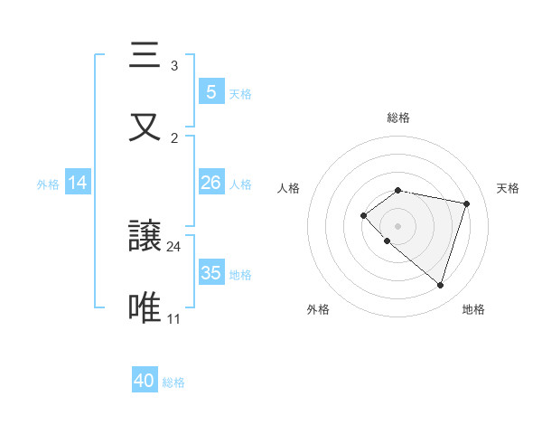 三又 譲唯さんの地格は35画の4点!