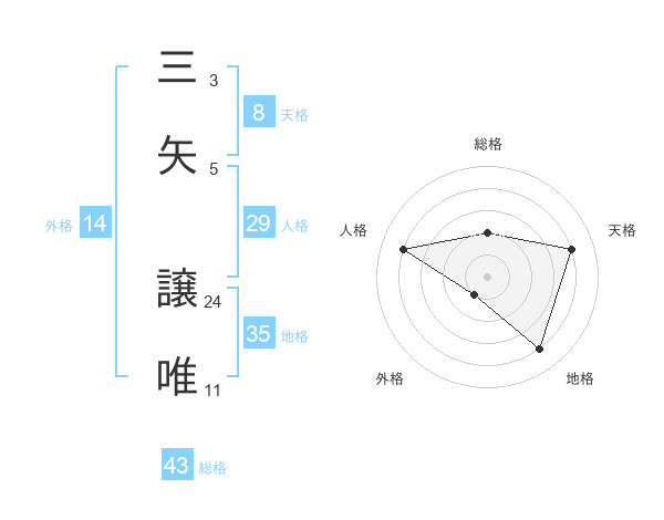 三矢 譲唯さんの地格は35画の4点!
