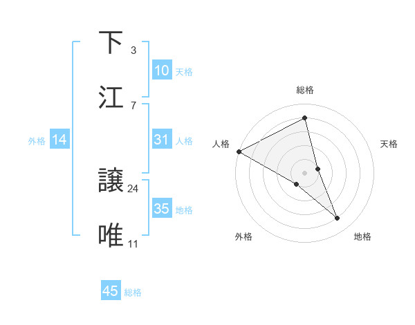 下江 譲唯さんの総格は45画の4点!