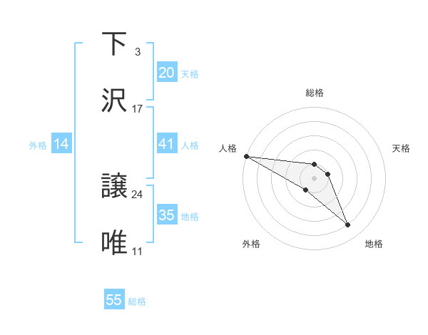 下沢 譲唯さんを姓名の画数から五運を鑑定