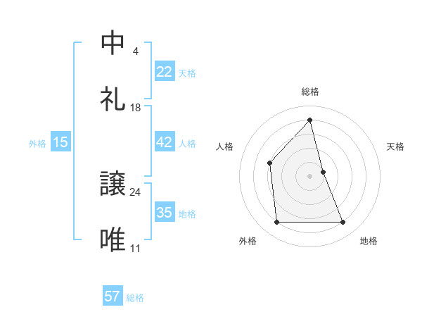 中礼 譲唯さんの総格は57画の4点!