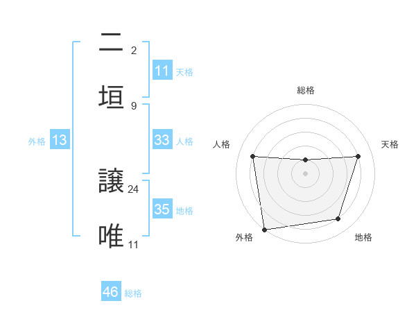 二垣 譲唯さんの総格は46画の1点!