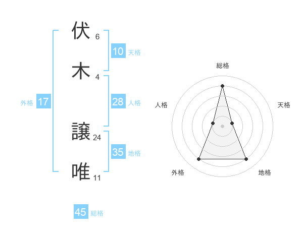 伏木 譲唯さんの総格は45画の4点!