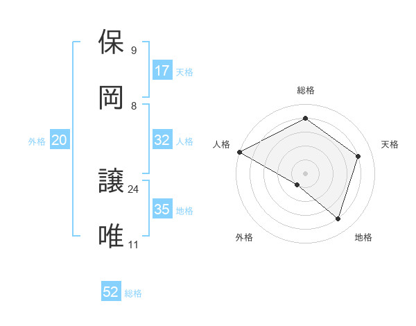 保岡 譲唯さんを姓名の画数から五運を鑑定
