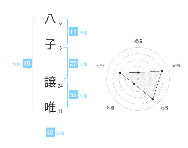 八子 譲唯さんを姓名の画数から五運を鑑定