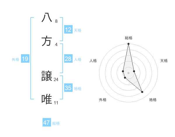 八方 譲唯さんの総格は47画の5点!