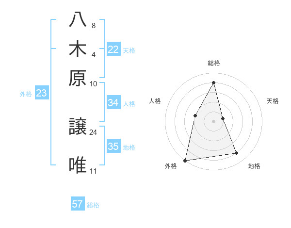 八木原 譲唯さんの総格は57画の4点!