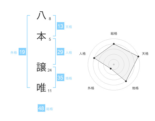 八本 譲唯さんを姓名の画数から五運を鑑定
