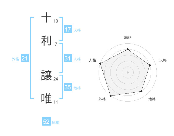 十利 譲唯さんを姓名の画数から五運を鑑定