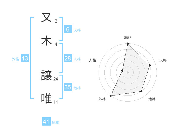 又木 譲唯さんの総格は41画の5点!