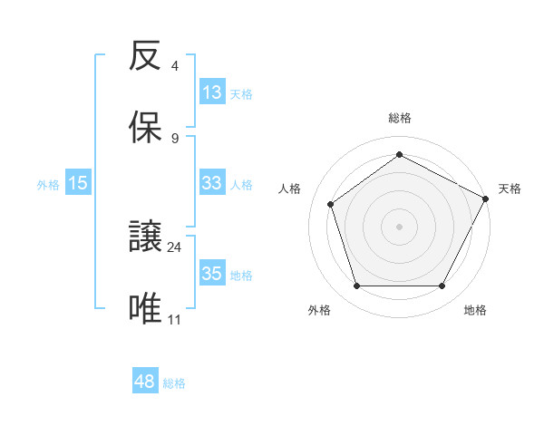 反保 譲唯さんの総格は48画の4点!