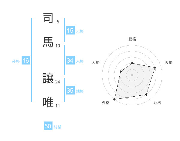 司馬 譲唯さんの総格は50画の2点!