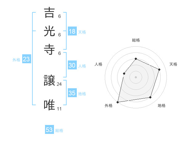 吉光寺 譲唯さんの総格は53画の3点!