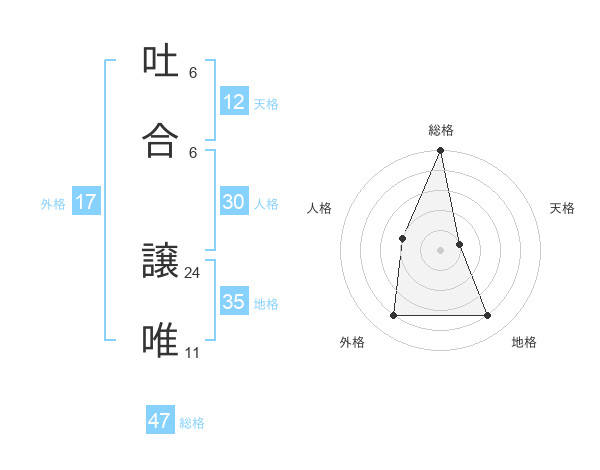 吐合 譲唯さんを姓名の画数から五運を鑑定
