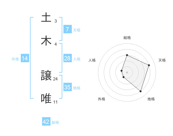 土木 譲唯さんを姓名の画数から五運を鑑定