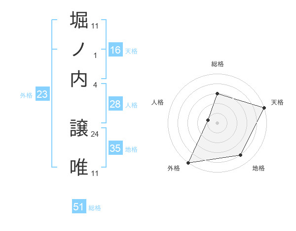 堀ノ内 譲唯さんの総格は51画の3点!