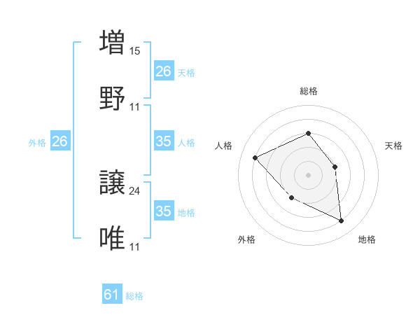 増野 譲唯さんを姓名の画数から五運を鑑定